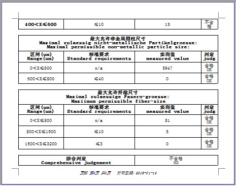 多國(guó)標(biāo)準(zhǔn)(ISO4406、ISO4407、IOS16232、NAS1638、ASTMD4378-03、VDA19)。標(biāo)準(zhǔn)可自行添加。
